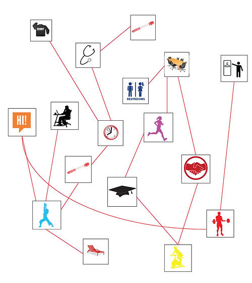 Finally, a doctors-gym must have a mixture between fitness and medicine so it can feel like one place. There are some obvious ways medicine and fitness can mix such as occupational and physical therapy but it is suspected that there are more ways the two can flow together. Several iterations of Activities and Connections should help generate ideas.